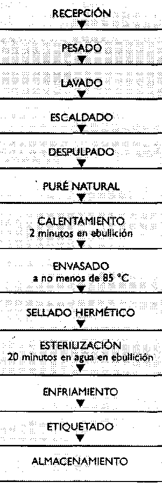 Los envases se cierran herméticamente y se procede a su esterilización por un período de 15 mio a temperatura de ebullición, al cabo de lo cual se enfrían por rebalse.