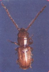 Descripción. Son los insectos más pequeños que atacan granos almacenados. Su cuerpo es apianado. La cabeza está provista de antenas largas y filiformes, generalmente de longitud mayor a la mitad del cuerpo y dispuestas hacia adelante. El protórax es más ancho en el frente que en la base. Las tres especies son muy similares en cuanto a forma y hábitos, siendo capaces de volar. El adulto mide de 1,5 a 2 mm de largo y tiene un color castaño claro.