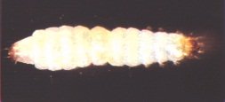 Biología. Las hembras depositan de 100 a 500 huevos aislados o en grupos en los productos almacenados. La larva, cuando está completamente desarrollada mide aproximadamente 13 mm de longitud. Es de color blanquecino, pudiendo ser ligeramente verdosa o con tintes rosados. Tiene tres pares de patas verdaderas y 4 pares de falsas patas en el abdomen. La larva totalmente desarrollada hila una tela sedosa, dejando hilos de seda cuando se arrastra en donde se acumulan deyecciones de la larva y partículas de producto y llega a cubrir la superficie del producto infestado con esta tela. La transformación de hueveclilo a adulto demora, aproximadamente 26 días. Generalmente no completa su desarrollo bajo 10° C. Los adultos son de corta vida y no se alimentan de productos almacenados.