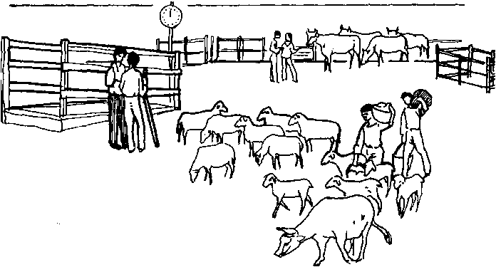 Les marchés de groupage. Les parcs d'attente, les balances, etc., restent souvent inutilisés. Il ne faudrait pas généraliser l'attribution de moyens de ce genre avant que l'expérience n'en ait démontré l'utilité. Les vendeurs occasionnels sont vraisemblablement moins capables d'estimer correctement les poids que les acheteurs spécialisés, mais ils estiment bien souvent qu'il ne vaut pas la peine de peser l'animal vivant. Il semble plus important pour les utilisateurs de ces marchés de disposer d'eau et de fourrage si les betes viennent de loin, et, dans les pays chauds, d'ambre. Des rampes d'acces munies de rambardes sont indispensables pour le chargement des animaux sur des véhicules, ou le déchargement.