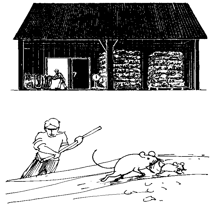 En ciertas condiciones, la reducción de la capacidad del medio ambiente puede ser muy efectiva en reducir ita población de roedores. En el caso de productos almacenados, buen saneamiento y limpieza de los graneros o bodegas es sumamente importante, tal vez más importante que cualquier otro método de control- (Figura 22).