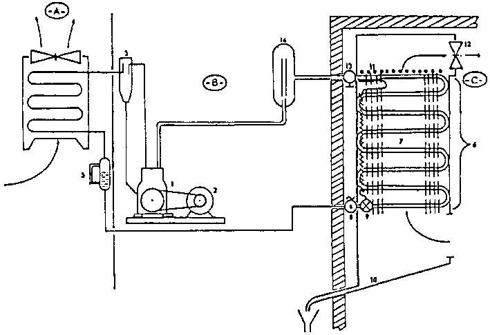 Un compresor en el que el gas refrigerado, ya sea amoniaco o más frecuentemente una mezcla de hidrocarburos halogenados, es comprimido y calentado inevitablemente (Figura 14).