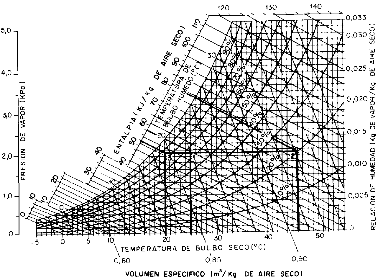 y la presión atmosférica, de acuerdo a la altura del lugar, se puede buscar en el Cuadro 3A del Apéndice. Luego, recordando que la humedad relativa del aire la da