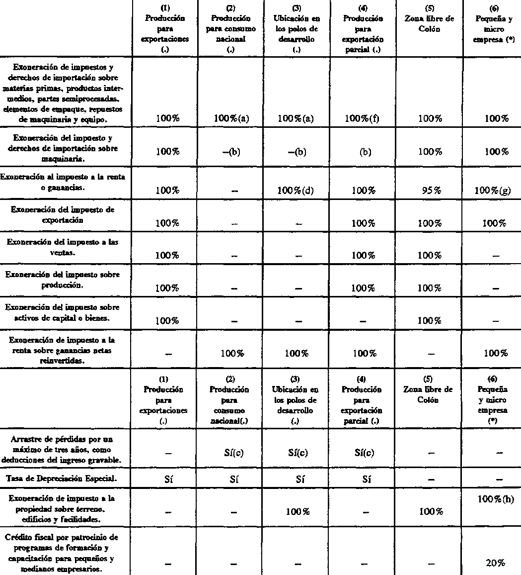 En el cuadro N°3 (ver próxima página) se encuentra un resumen de los beneficios otorgados a las empresas que inviertan en Panama.