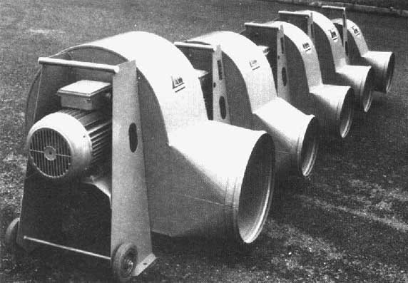 C'est le cas pour des cellules rondes pouvant recevoir deux ventilateurs mobiles, mais il arrive aussi de rencontrer de grosses installations avec galerie de ventilation et ventilateurs à poste fixe.