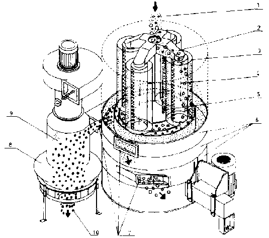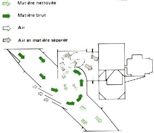 Principe d'un nettoyeur-séparateur type D 200 (Doc. Denis).