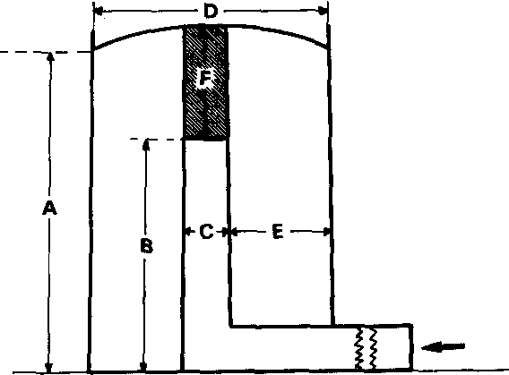 Dans ce type d'appareil, l'air arrive par une cheminée centrale grillagée et traverse horizontalement le grain placé dans un anneau concentrique (Fig. 30 et 31). La section est généralement circulaire, mais on rencontre également des séchoirs à section polygonale. Pour éviter que l'air ne s'échappe par le haut, il faut obturer la cheminée à une certaine distance de la surface du grain (F = E sur la figure 30).