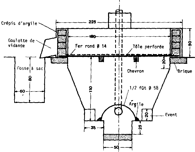 Fig. 91: Séchoir artisanal type BROOKS. (Coupe longitudinale)