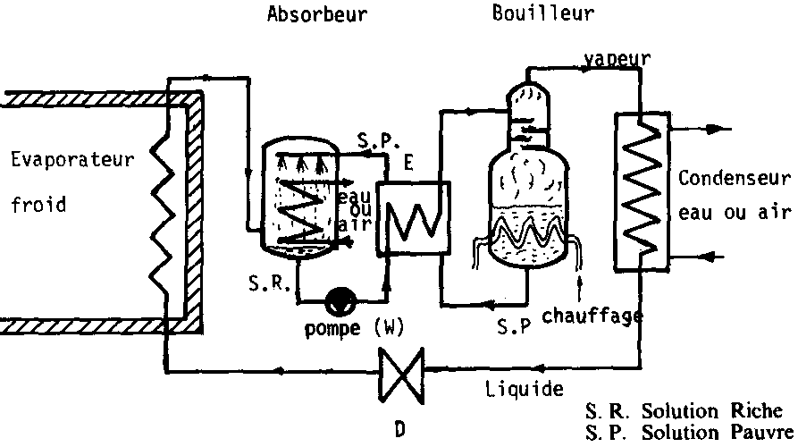 Fig. 115: Schéma d'une machine frigorifique à absorption.
