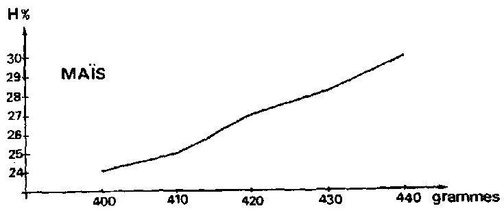 Il apparaît qu'une erreur de 10 % sur le poids de l'échantillon se traduit par une erreur de 6 points (de 24 à 30 %) sur la mesure de l'humidité. Il est donc important que les échantillons soient «pesés avec soin».