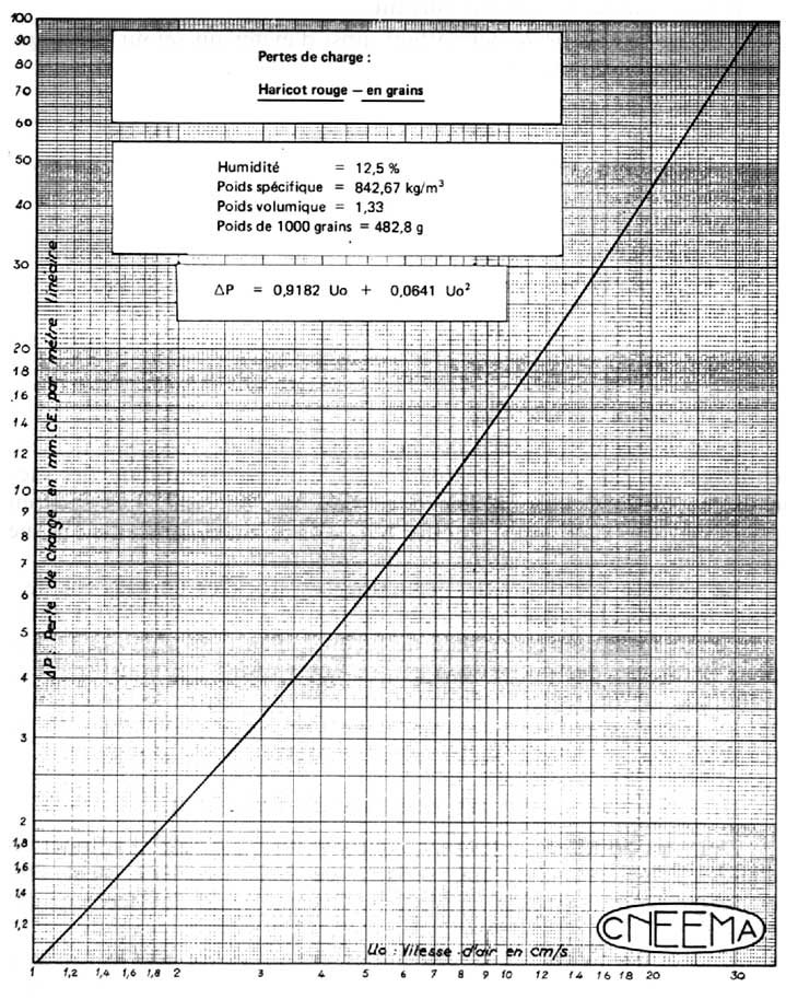 PERTES DE CHARGE EN VENTILATION (variété Virginia) EN FONCTION DU DÉBIT D'AIR (Pertes de charge exprimées en mm CE)