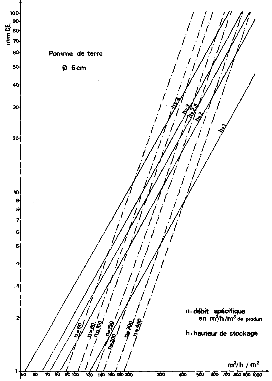 Fig. 316: Pertes de charge dans des lots de pommes de terre.