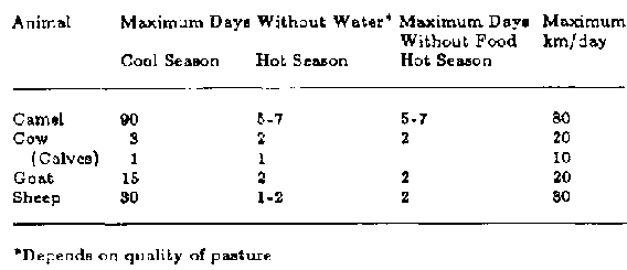 Thus, groups with a greater proportion of camels than other animal species will cover longer distances in their annual migrations than will those tribes whose herds are largely composed of cattle. Also, tribes herding camels, sheep, goats, and cattle will, depending upon the size and importance of the different herding components, split their herds in an attempt to realize the optimal potential of each species.