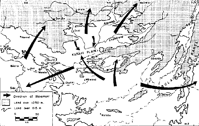 Finally, while theoretically the need to water stock adequately is the only potential limitation upon migrations, in practice habit plays a large role in determining where a tribe will graze. (18) It is the return year after year to an area with well-known watering and grazing potentials that permits the delineation of tribal territories, and only dire necessity will force a tribe to move to an area outside its normal orbit.