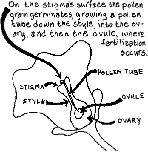 Sexual reproduction is the combination of genetic material from the reproductive cells or gametes: sperm contained in pollen from the male combines with the ovule in the female (Box 14.1). The result is a seed that carries characteristics of both parents. Flowers are the specialized plant parts where the gametes are produced, and those flowers with female parts are the site of pollination, fertilization, and seed production.