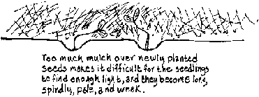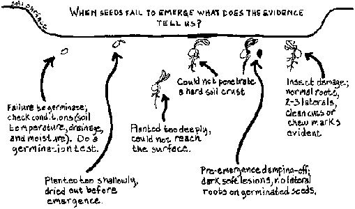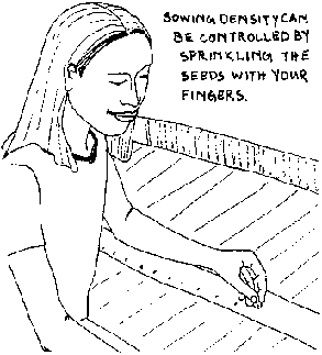 Many garden crops reproduce sexually when male reproductive cells (contained in pollen) and female reproductive cells (contained in ovules) are joined together during fertilization, producing an embryo that will be contained within the seed. After the seed matures, it will germinate and grow if environmental conditions are right. Appropriate techniques for preparing and planting seeds and for watering, mulching, and shading seedlings conserve water and protect the seedling from the harsh environment. Diagnosis and remedy of seed planting problems may include a germination test to check the health of seeds. Once the seedlings have emerged, thinning them can improve vigor and production.