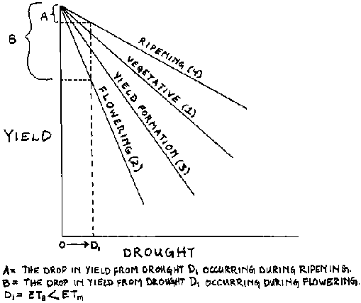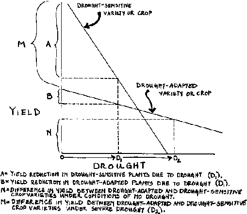 Plants that can survive water stress are called drought tolerant. The ability to tolerate drought depends on the stage in the life cycle during which drought occurs. For example, if cowpeas experience a water deficit while they are flowering and forming seeds the yield will be significantly reduced. However, if the same water deficit occurs while the cowpeas are forming leaves, before the flowering stage, then the reduction in yield will be much less3 (section 10.4).