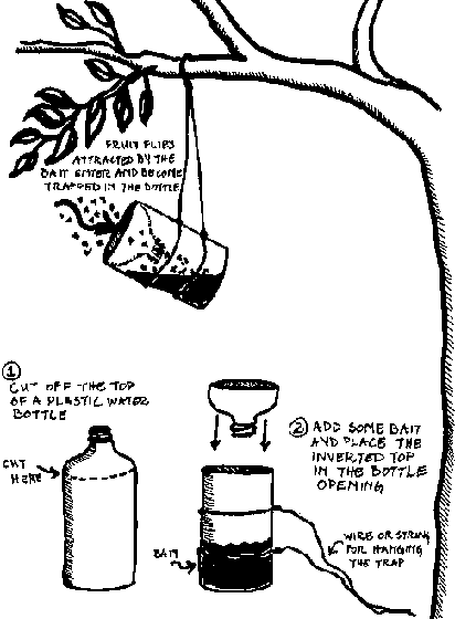 Cover fruit to protect from egg laying, use homemade sprays, traps |