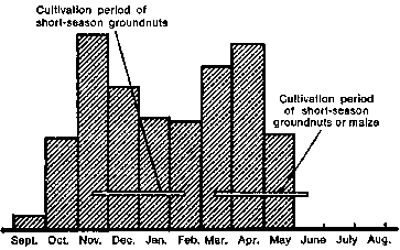 During the second rainy season one can grow short- season groundnuts or maize (15 March to end June).
