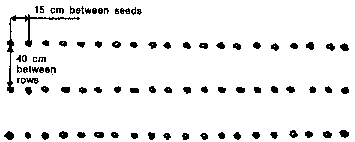 Leave 15 centimetres between seeds in each row, and 40 centimetres between rows.
