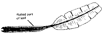 The banana plant has large leaves closely rolled up one over the other. Together they look like a trunk, but they form only an apparent trunk.