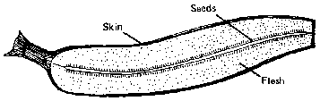In the middle of the fruit you can see little black specks; these are the seeds, but they will not germinate (see Booklet No. 1, page 8).
