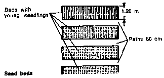 · transplanting the young seedlings into nursery beds, and later planting out the seedlings in the plantation.