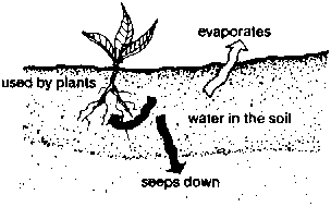 64. Part of this water is used by plants and part evaporates from the soil at the surface.