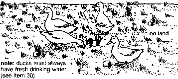 30. If you are raising your ducks where there is no fresh water, see that they have plenty of fresh drinking water.