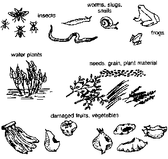 · insects, worms, slugs, snails,