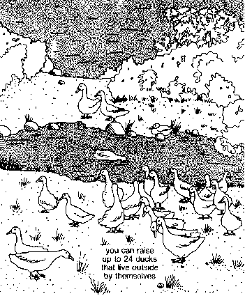 58. You learned that you can keep as many as 24 ducks that live outside by themselves and find their own food.