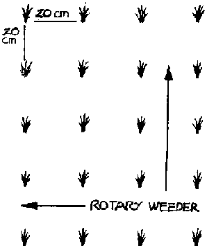 Additionally, a 0.30 x 0.15 m spacing is convenient when rotary weeders are used.