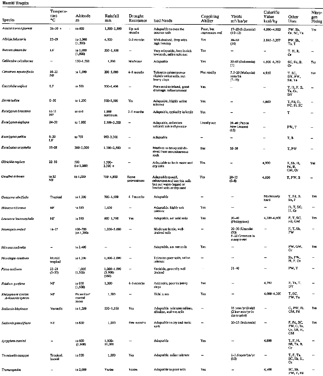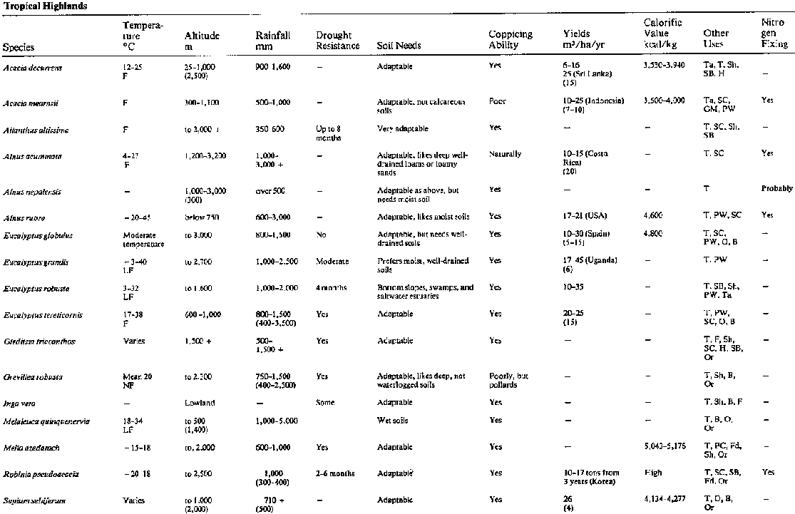 Our table is based on one prepared by Alan Grainger for his review of Volume I of Firewood Crops in International Tree Crops Journal Volume 2 No. 1, 1982.