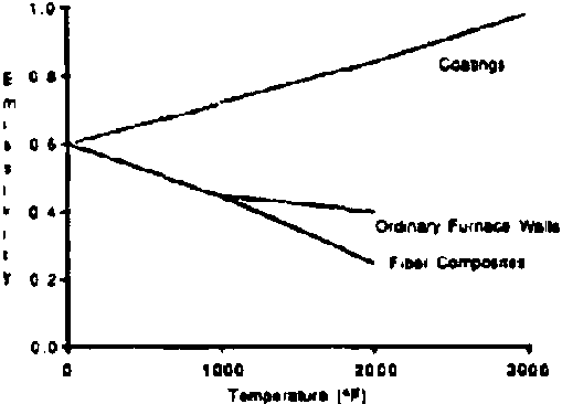 At 3000 F the emissivity is listed at 98%. This material is water based silica-alumina and is only good as a coating over an existing structure. Monolithic pieces have not yet been developed. It is now used in furnaces, boilers, on quench baskets and racks, and potentially may improve fuel efficiencies. Recent developments in surface finishes and hardness have made this material attractive to engine designers. Exact finishes are possible and the coating is relatively easy to apply to the structure.