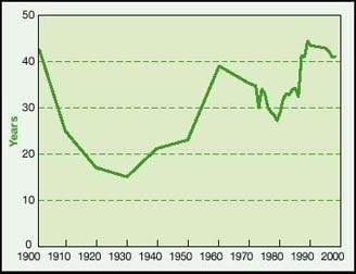 For many years, world oil reserves have experienced small but steady increases, which implies that the discovery or delineation of new reserves has at least kept pace with production. But many geologists focus on the concept of a quasi-fixed stock of hydrocarbon occurrences that, once production commences, can only decrease. For oil, they argue that few new oil fields have been discovered since the mid-1970s, and that most reserve increases have come from revisions of previously underestimated existing reserves (Hatfield, 1997; Campbell and Laherrere, 1998) and improved recovery techniques. Peak production lags behind peak discovery (of the mid-1960s) by several decades. Larger and more obvious fields are found first, leading to an early peak in discovery and diminishing returns in exploration: the more that is found, the less is left to find. Fields that are smaller and harder to find and to exploit follow, but eventually the fixed stock will be exhausted. Some 90 percent of current global oil production comes from fields more than 20 years old.