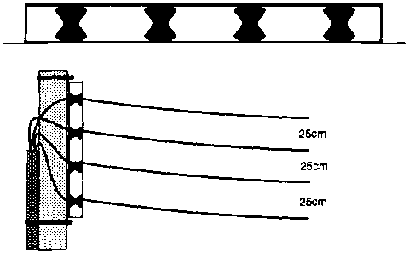 Conductors for the single wire spurs would be either "Silmalec" or 3/12" galvanized steel wire.