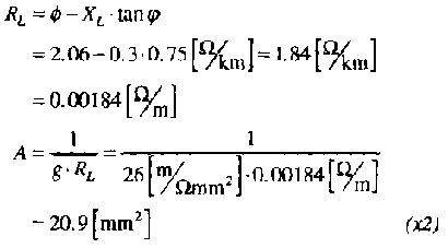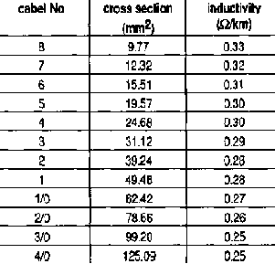 The cross section A is difficult to calculate if XL is not zero and is therefore tabulated. Table 3 shows vertically arranged ('racked') wires equally spaced at a distance of 0.25 m.