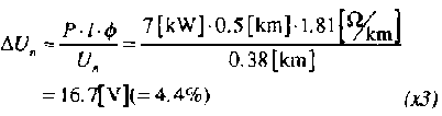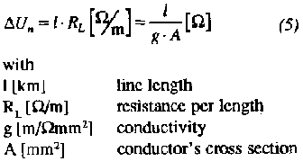 The line is described in the equivalent circuit by a resistor and an inductance. Above 60 kV the capacitance between the wires as well as between wires and ground have to be considered. With a current I along the line a voltage drop occurs. At the line's end only a reduced voltage U2 = U1 - DU is available. The phase shift f between U, and U2 is small for short lines and the exact complex calculations can be avoided. A calculation using real values is introduced.