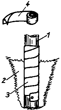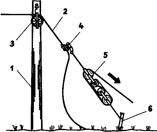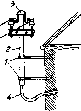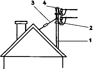 1 steel pipe, 2 cross bar, 3 guying, 4 protective cap.