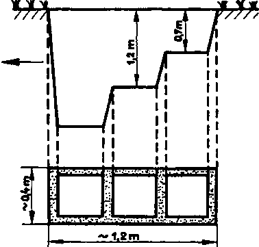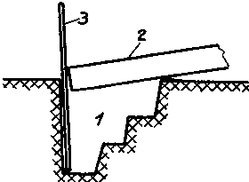 If in difficult territory it will be impossible to put up the poles by means of truck-mounted crane the poles may be erected aided by wooden rods being bound together in the shape of shears. For easing sliding of the poles into their pit, a sliding board or plank is placed vertically to the front wall of the poles pit. The vertical position of the pole is to be checked by means of a plummet or other measuring device.