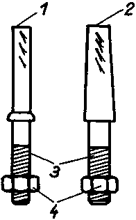 1 standard spindle, 2 reinforced spindle, 3 threaded shaft, 4 nut
