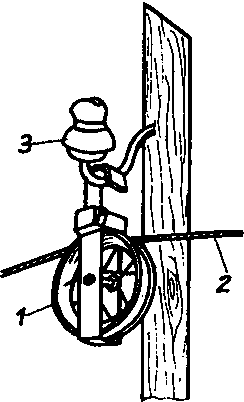 1 insulator, 2 tie, 3 s-shaped clamps, 4 wrapped stranded conductor