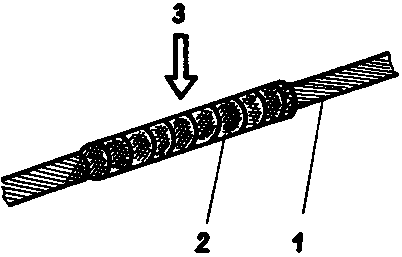 On wooden poles which are to be reattended, bandings are frequently being applied against rot and pests as shown in fig. 2.34. For this purpose the pole is to be uncovered and guyed. The banding is formly wound in clockwise direction around the pole with overlap and nailed on both ends. Steel towers are to be protected against corrosion over the total length by a penetrative primer. Also to the steel ends of concrete masts reinforcement a protective coat is to be applied, e.g. a bituminous coat.