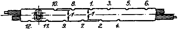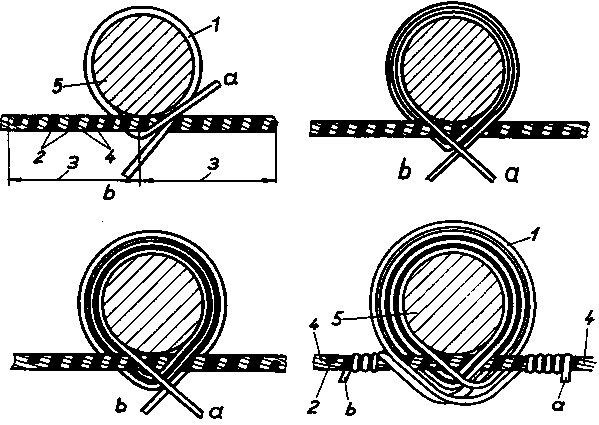 How to make a reinforced cross binding joint may be seen from fig. 2.24. For better illustration the turns of the binding wire on the insulator are shown one upon the other. Pay attention, that the stranded conductor should be fixed by 12 turns binding wire at least.