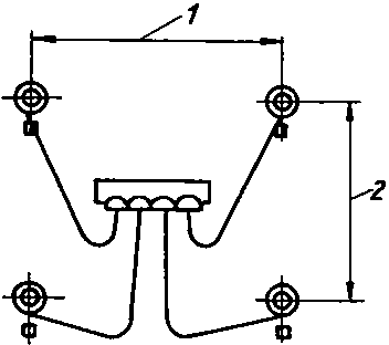 1 mounting of two insulators, 2 mounting of three insulators, 4 mounting of four insulators