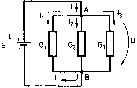 According to their circuit structures, a distinction is made between branched, unbranched and meshed circuits. In branched circuits all loads are connected in parallel. Their equivalent conductance is equal to the sum of the individual conductances, hence, always greater than the greatest individual conductance. The equivalent resistance, however, is always smaller than the smallest individual resistance.