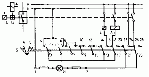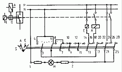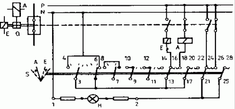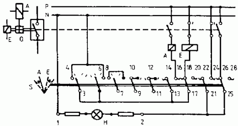 By changing the position of the circuit breaker Q the circuit of the signal lamp is closed. Acknowledgement is effected by changing the discrepancy switch S. |
