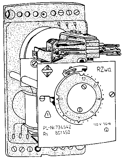 - Time relay with synchronous motor-, for example RZw vvhen a voltage is applied, the synchronous motor starts. With the help of a coupling magnet the motor is engaged with a time wheel which passes through an angle proportional to the set time until contact making takes place. When the voltage disappears, the corresponding contact elements open immediately.