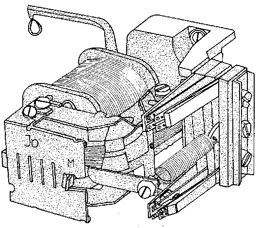 These relays consist of a hinged armature magnet and a mechanical time-delay element. Through the energization of the magnetic coil a contact lever is moved at constant speed which strikes against an adjustable countercontact and switches the tripping circuit. When the voltage disappears, the relay returns to its starting position without delay,