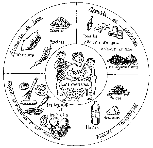 · un supplément en vitamines et sels minéraux apportés après la cuisson de la bouillie sous forme de jus de fruit (mangue, orange, tomate, pain de singe).